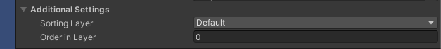 Order in Layer 값을 10으로 설정하면 다른 오브젝트보다 앞에 보입니다.