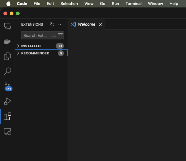 - VS Code 왼쪽 사이드바에서 확장 프로그램 아이콘(네모 네 개가 겹쳐진 모양)을 클릭합니다.