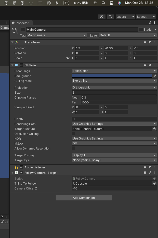 이렇게 하면 Inspector에서 Camera Offset Z 값을 쉽게 변경할 수 있습니다.