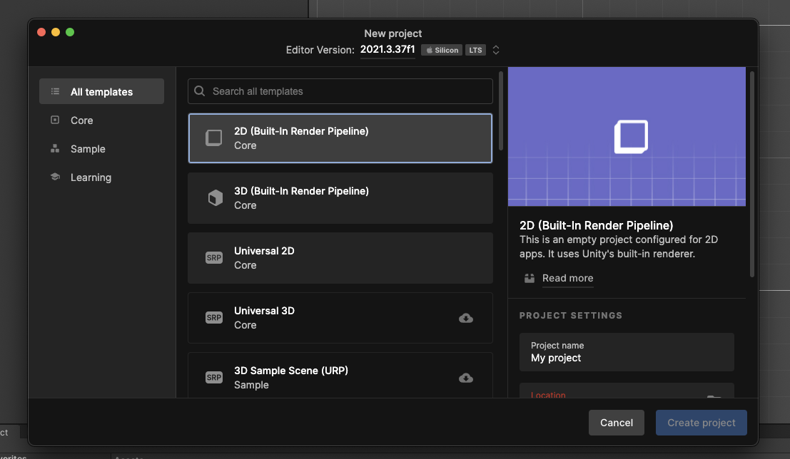 먼저, Unity에서 새로운 2D 프로젝트를 만들어보겠습니다.