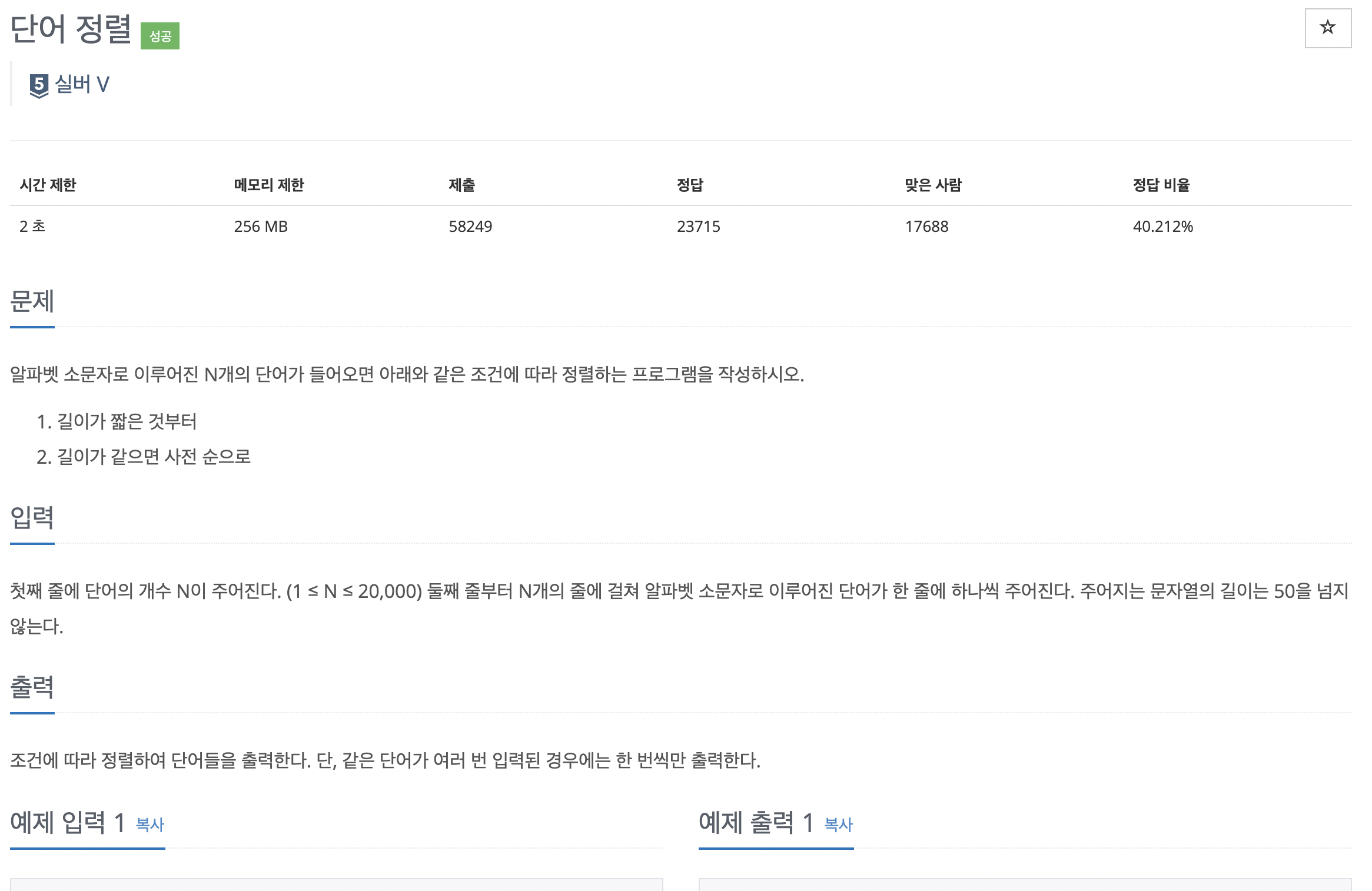 단어 길이와 단어를 묶어서 arr 리스트에 넣었습니다. 중복값을 없애주기 위해서 set()을 사용한 후 list로 만들었습니다. 그리고 sorted()를 이용해서 정렬된 a1 리스트를 만들어 출력했습니다.