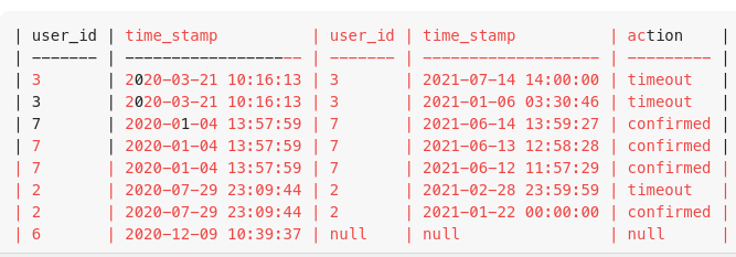 # Confimations테이블은 (유저, 시간)별 이벤트 ENUM(confirmed, timeout)