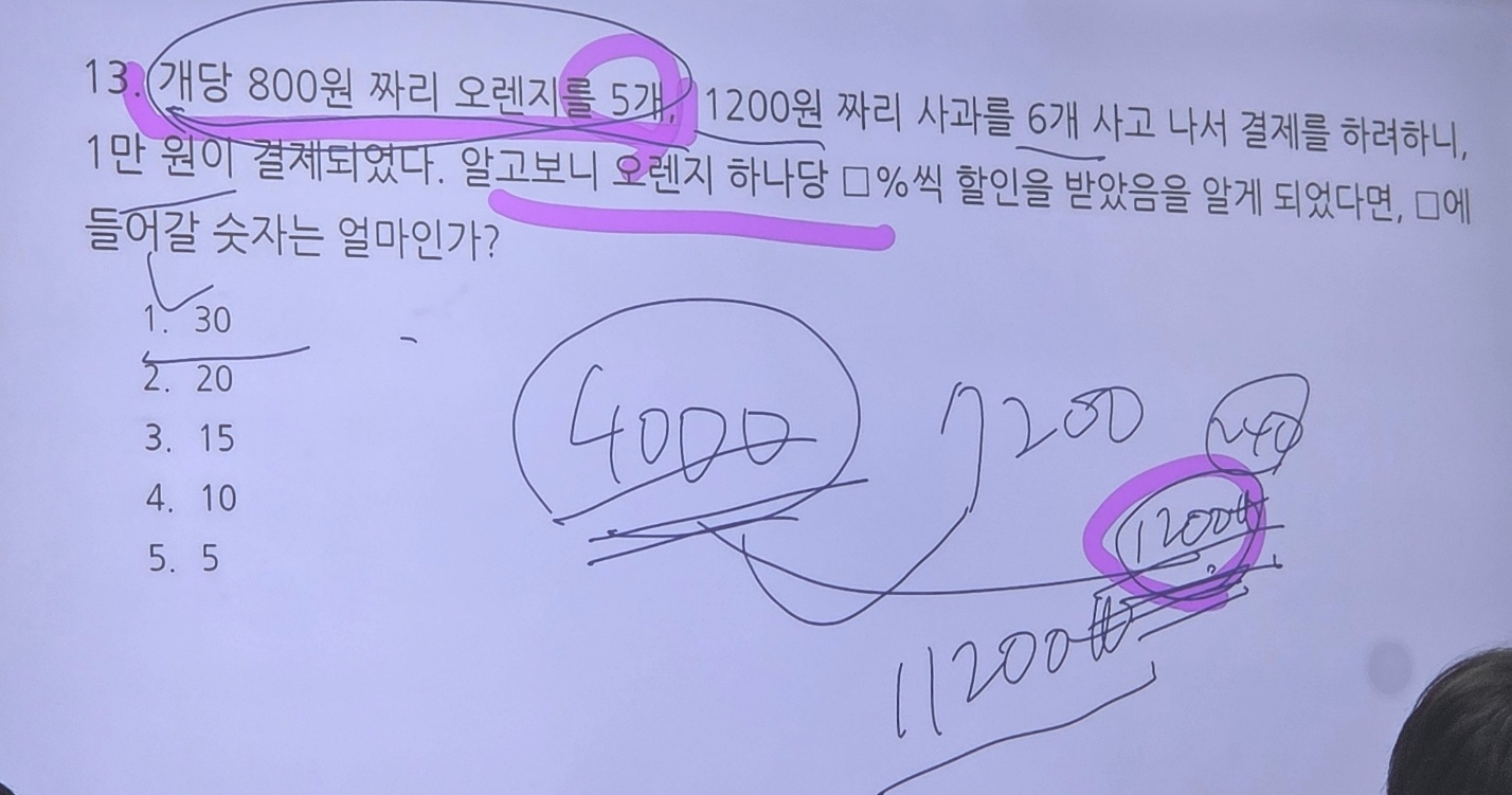 가급적 연습장 안쓰고 풀기. 모의고사에 딱 2문제 밖에 없는 응용수리 시간이기에 문제를 찍어가라.