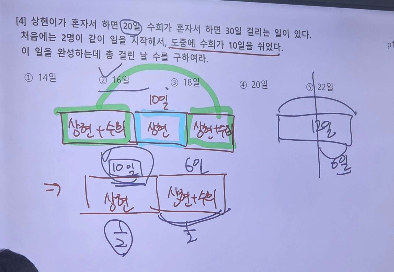 B하고 C가 10일간 인해서 22인분을 처낸다. A는 애시당초 제회.