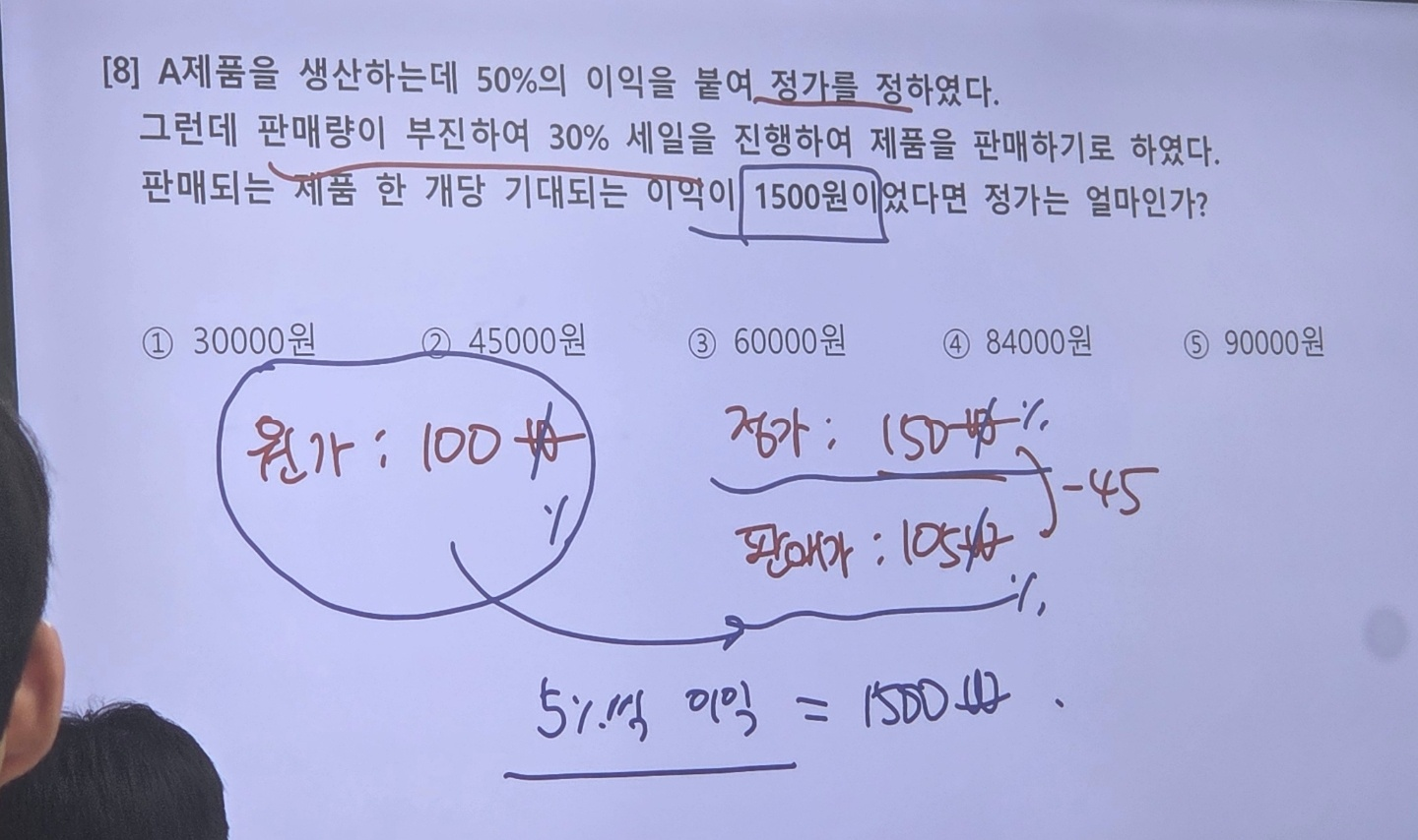 100원 테크닉이용한 원가-정가 문제