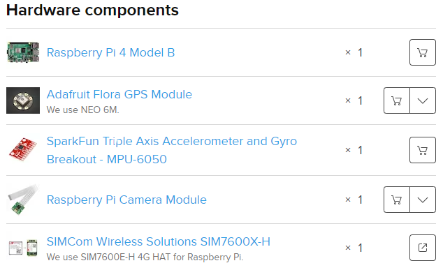 사용한 전동킥보드의 라즈베리파이에 장착된 것들이다.