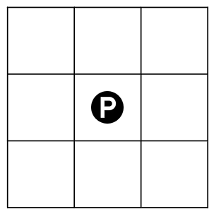 이 바둑판에서 중앙이 주차구역이라고 했을때 주차구역에서 360도 전체의 사진을 모두찍은후 주차구역의 데이터베이스에 저장합니다. 그리고 주차구역이아닌 경우는 주차구역 밖에서의 360도 사진을 찍은후 주차구역 외부의 데이터베이스에 저장합니다.