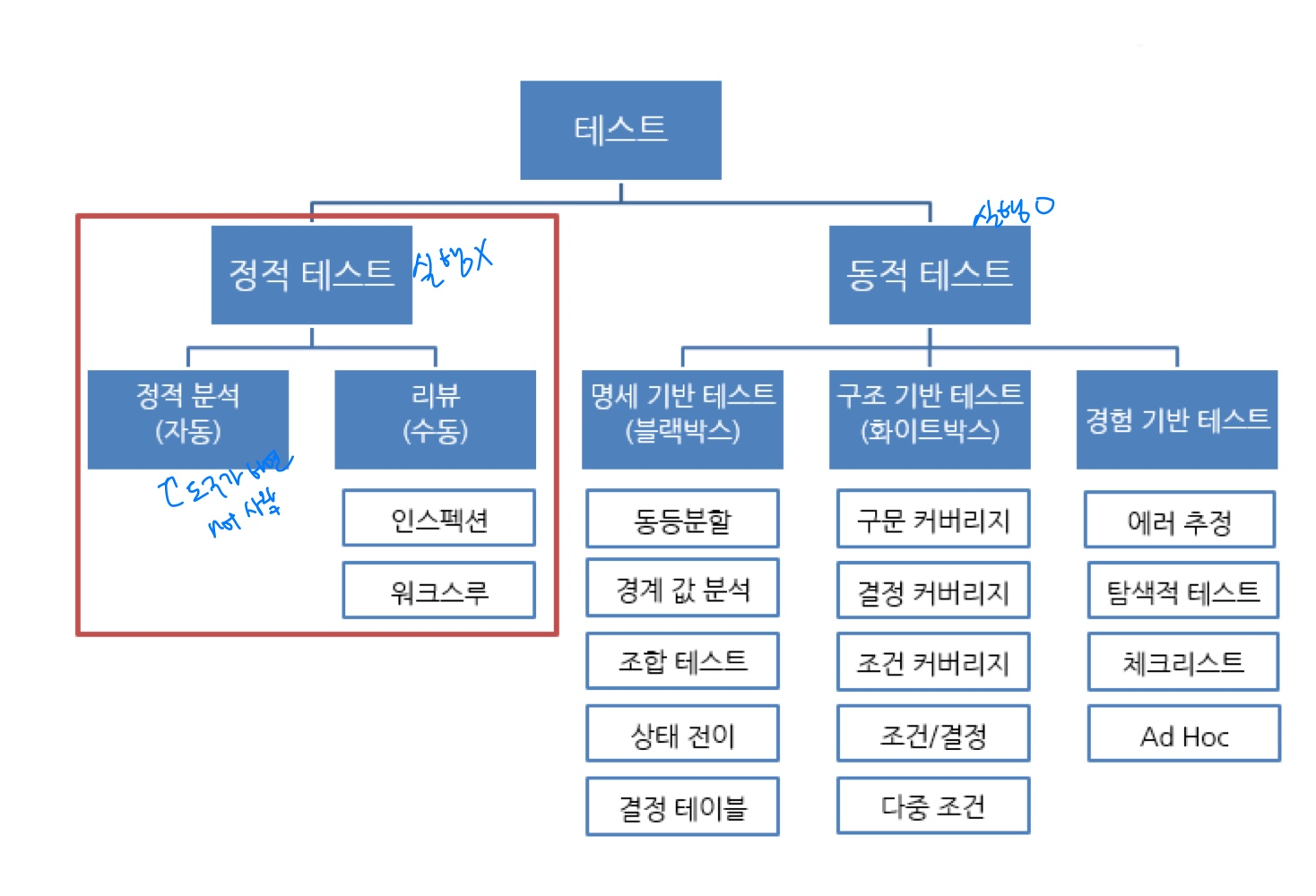 - 동적 테스트 실행전, sw 개발 수명 주기 초반 적용 - > 조기발견 가능 - >비용절감/기간단축