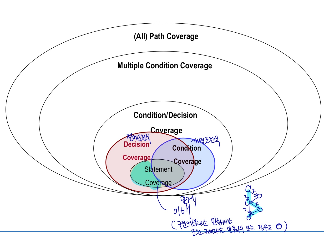 - 결정 커버리지 = (테스트케이스에 의해 실행된 분기수) / (전체분기수) * 100