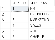 INSERT INTO DEPARTMENTS (DEPT_ID, DEPT_NAME)
