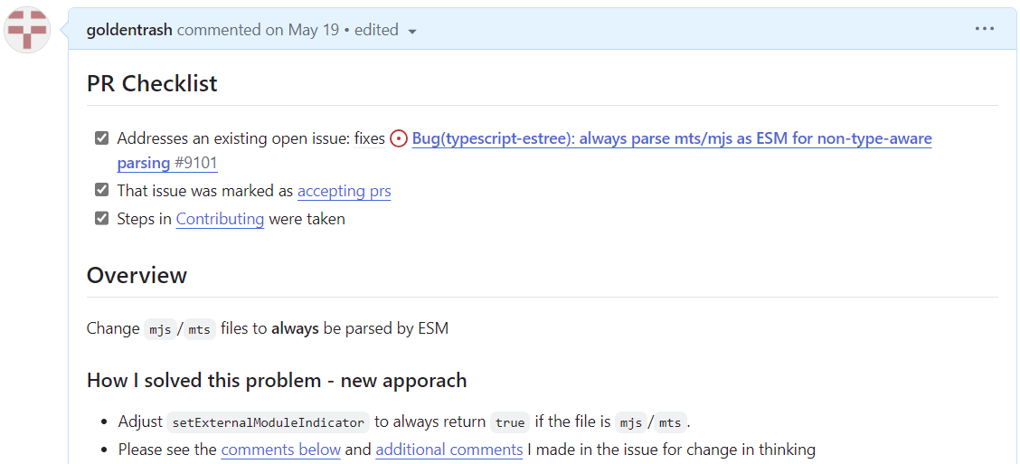 PR을 올리고 시간이 꽤나 흘렀다. (맞다, 그냥 내가 좀 조급했을지도 모른다) 위에서 언급한 대로 다음 기여를 생각하지만, 우선 하나라도 approve를 받고 싶었다. 혹여나 내가 부족한 부분이 있다면 바로 잡고, 다음 PR을 좀 더 제대로 준비하고 싶었기 때문이다.