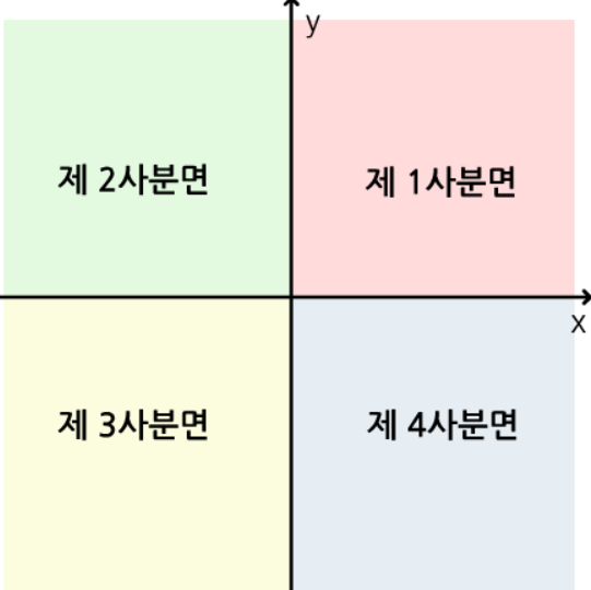 1사분면: x가 0 초과의 양수 and y가 0 초과의 양수일 경우