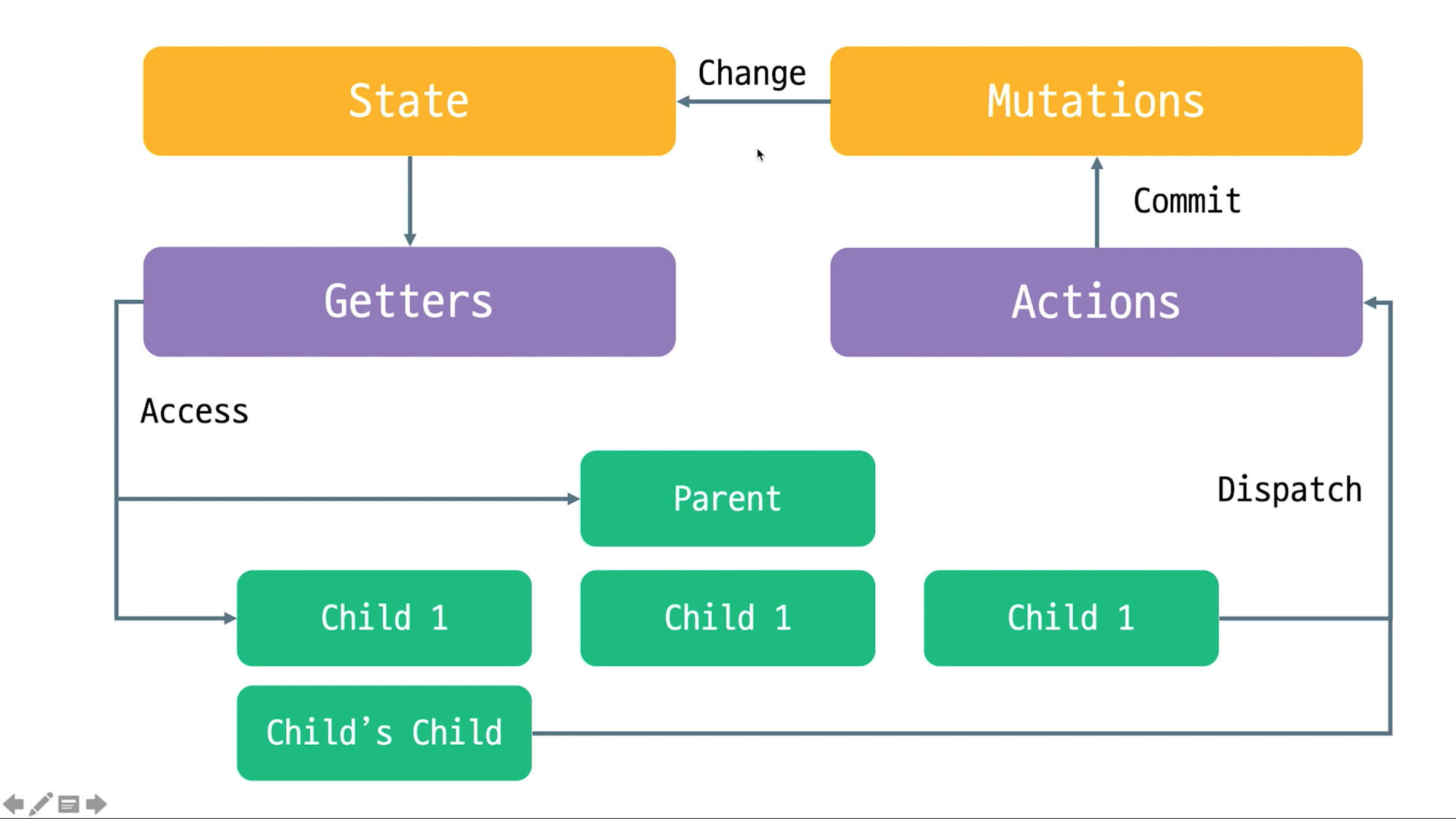 📌 actions를 각 components에서 dispatch를 사용해서 actions를 실행하고 actions내에서 mutations를 commit한다.