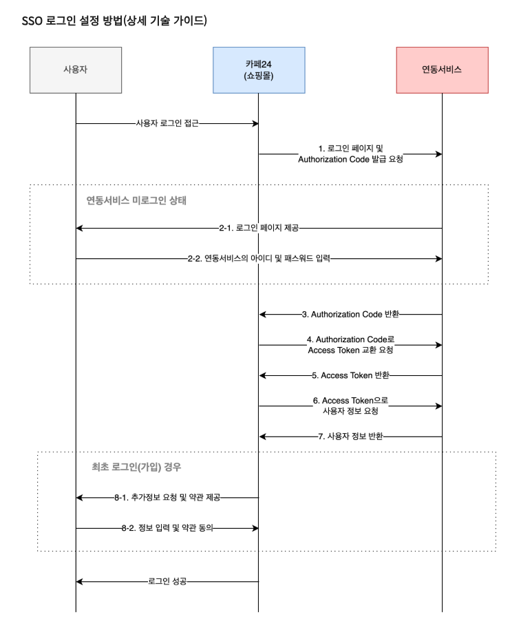 일전에 카페24 기반의 자사몰을 작업하면서 웹뷰에서의 로그인에 대해 다뤘었다. 앱에서 웹뷰를 통해 자사몰에 접근할 때 사용자가 별도의 로그인 절차를 거치지 않도록 하는 것이 목표였기에 다음과 같이 설계했다.