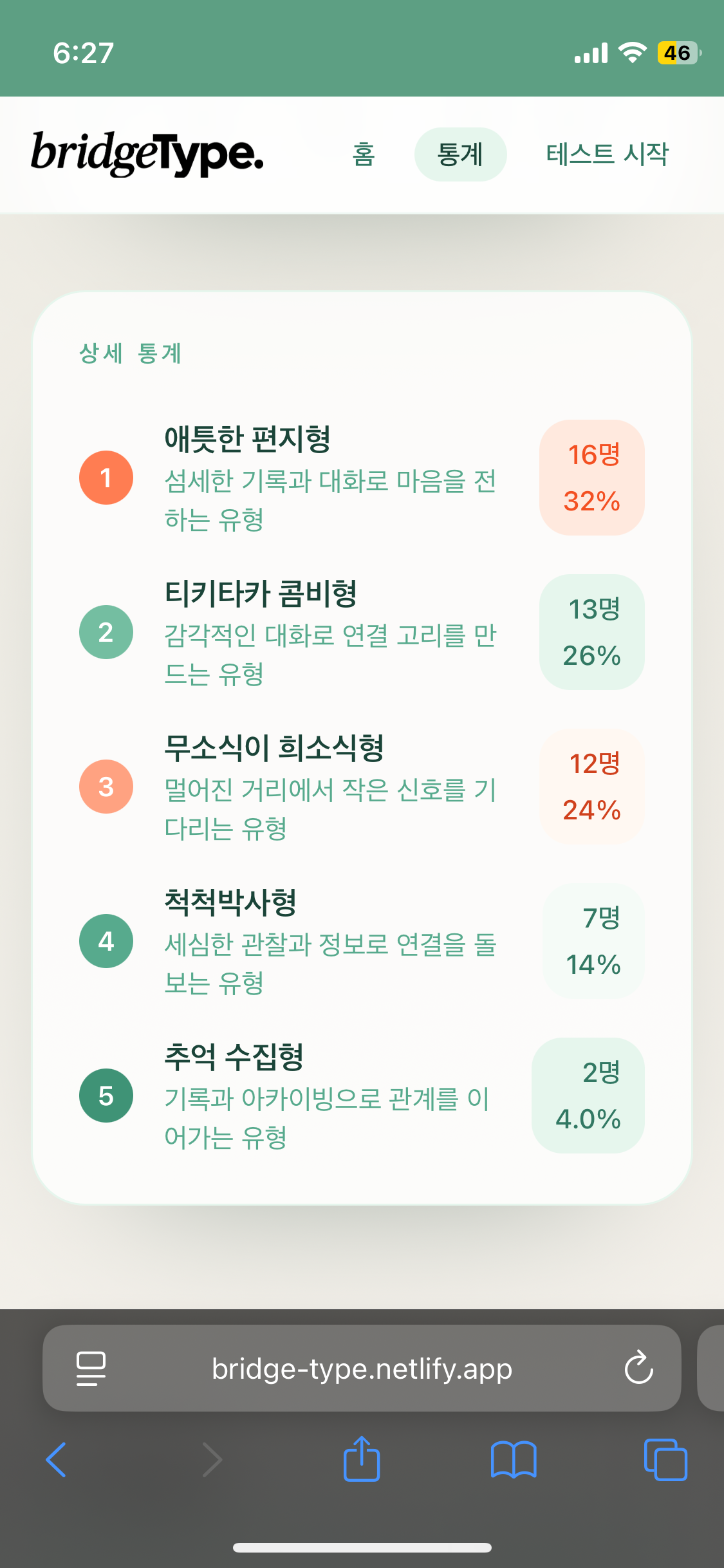 추석 연휴 간 bridgeType이라는 사이드 프로젝트를 진행했다. 비사이드의 SOLO 포텐데이 참여를 계기로 시작하게 됐는데, 추석 연휴 동안 AI를 활용해 1인 개발을 하는 챌린지였고, 긴 연휴이니 뭐라도 하나 만들자는 생각에 충동적으로 신청했다. 사실 끝까지 참여를 망설이긴 했다. 방송대 중간 과제, 앱 개발과 데이터베이스 스터디 이미 할 게 산더미인데 이게 되나..? 근데 뭐 또 벌려 놓으면 하겠지 싶은 ‘의욕 드리븐’으로 참여를 결정했다.