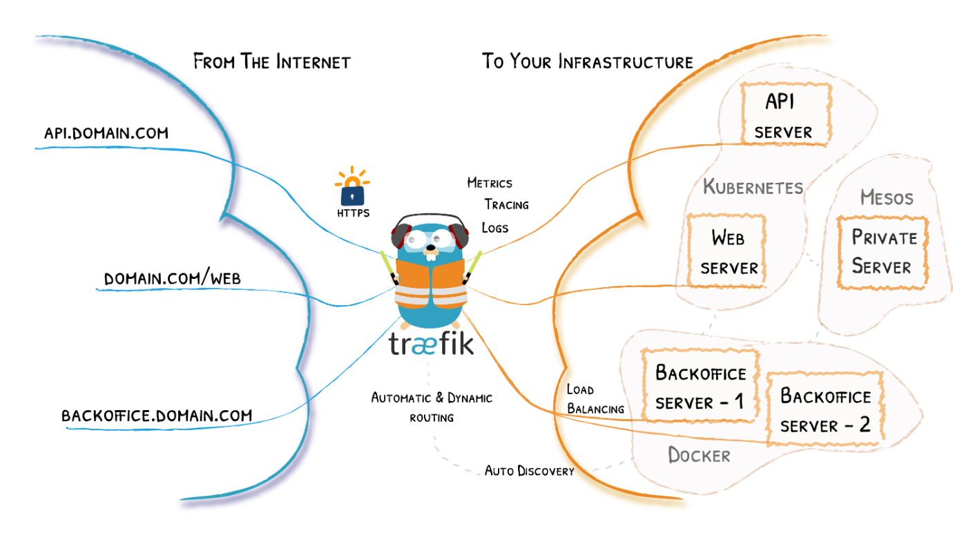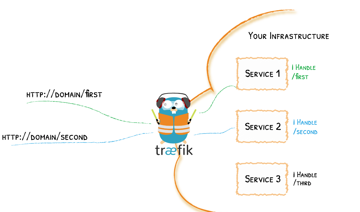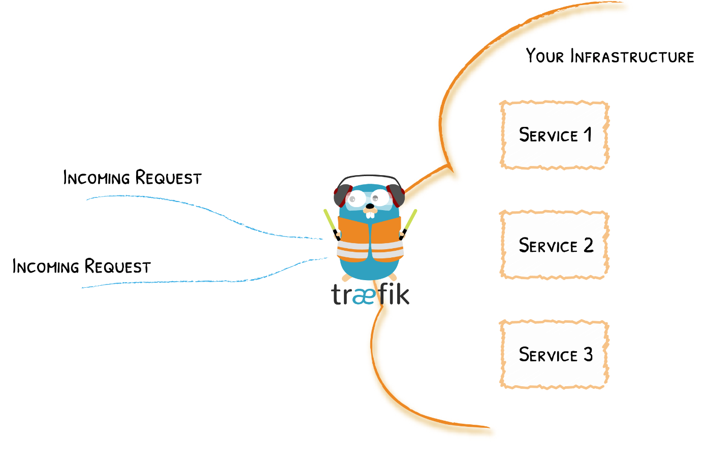 Traefik은 엣지 라우터입니다. 즉, 플랫폼의 문 역할을 하며, 모든 들어오는 요청을 인터셉터 하고 라우팅해줍니다. 경로, 호스트, 헤더 등을 기반으로 어떤 서비스가 어떤 요청을 처리할지 결정하는 모든 logic 과 rule 을 알고 있습니다.