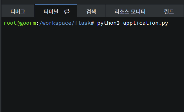 ㅤ터미널에서 python3 application.py 명령을 실행한다.