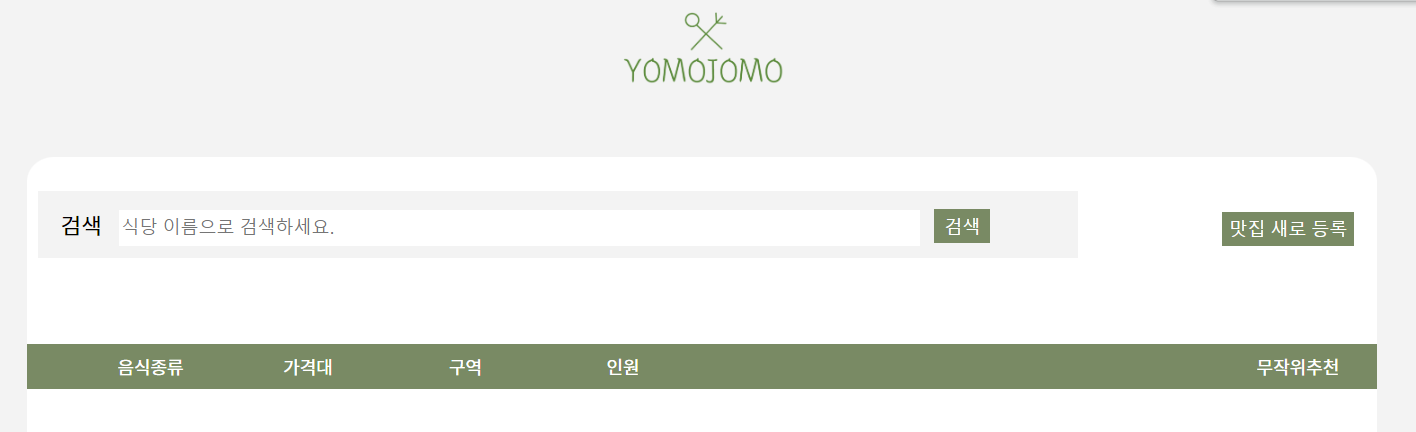 출력된 하나의 식당 이미지를 클릭하면 바로 해당 식당의 상세페이지(detail.html)로 연결할 수 있도록 href 링크에 {{rand.res_name}}을 활용했다.