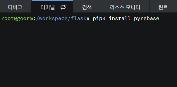 ㅤ터미널에서 pip3 install pyrebase --use-feature=2020-resolver 명령을 실행한다.