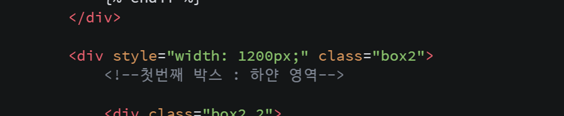 ㅤ이때 주의할 점은, {% 와 if 사이에 공백이 필수적이라는 사실이다. 조건문과 %} 사이에도 공백이 필수적이다. 또한, {와 %는 붙여 써야 인식 가능하다. if 문을 시작하면 if문이 끝났다는 endif 선언도 필수적이므로, if문 구조를 잘 파악해야 if문을 열고 닫을 때 오류가 생기지 않는다.