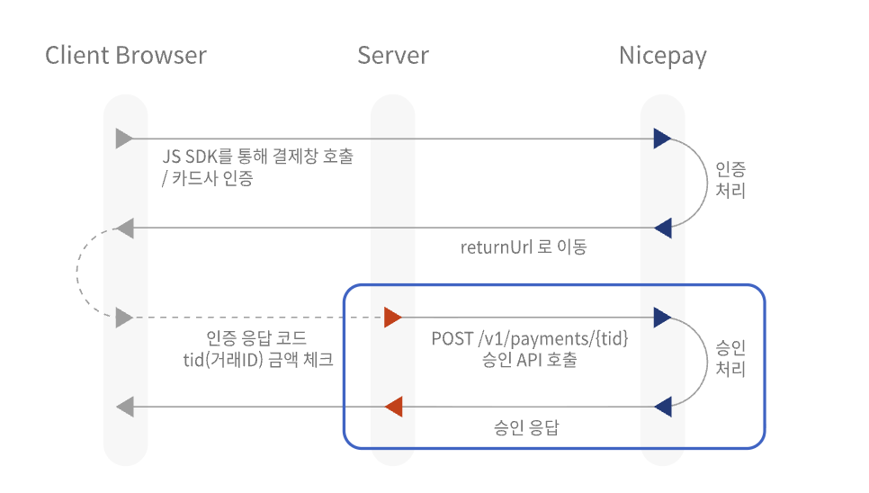 인증 결과 수신/금액 검증/승인(결제 확정)/성공·실패 리다이렉트는 백엔드에서 처리하세요.