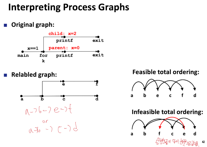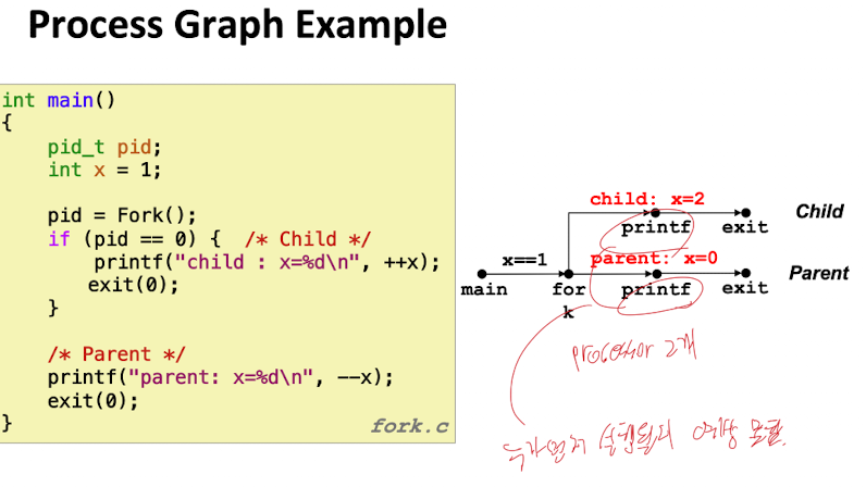 - 부모의 프로세스가 먼저 실행될지, 자식의 프로세스가 먼저 실행될지는 예상하지 못함