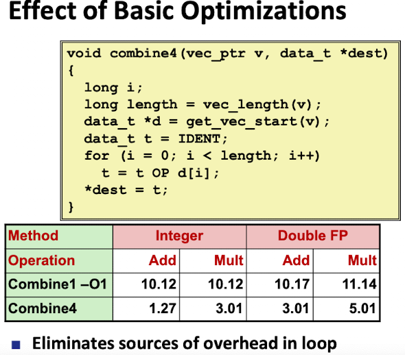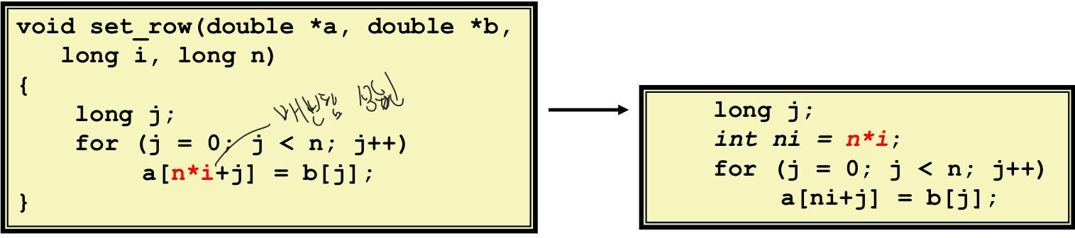 - 컴파일시 최적화 옵션 준 후 코드 수정된 것을 code motion 통해 수정시 대폭 향상