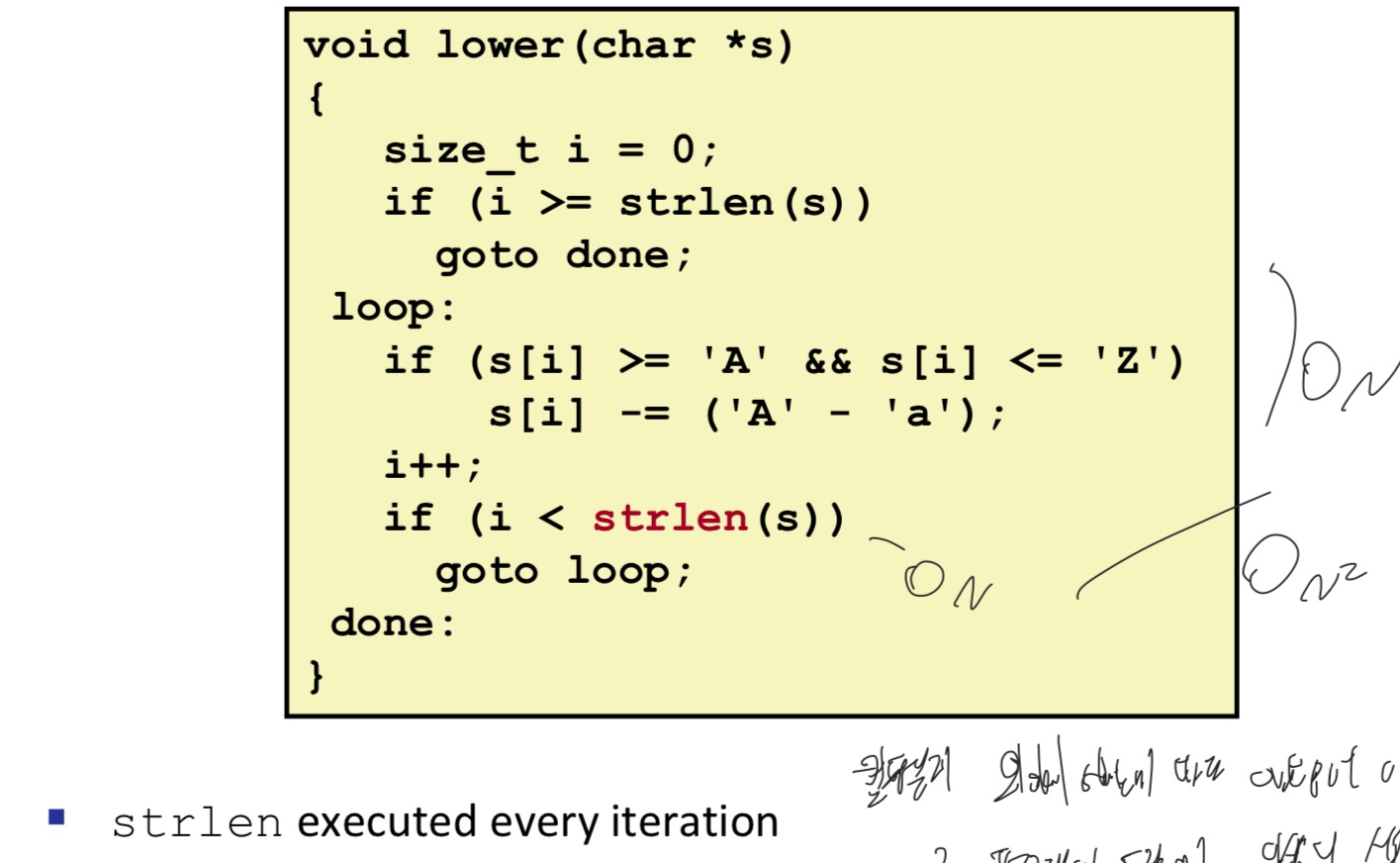 - Output이 달라질 수 있다. 즉 프로그램의 동작에 이상이 생길 수 있기 때문에 strlen을 옮기지 않고 그대로 실행