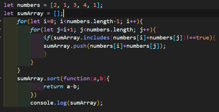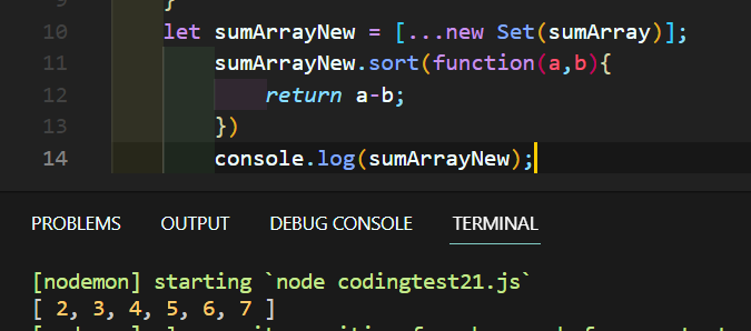 오늘은 주어지는 임의의 정수 배열에서 서로 다른 인덱스의 숫자를 뽑아 더한 값을, 중복없이 오름차순으로 정렬하는 함수를 작성했다.