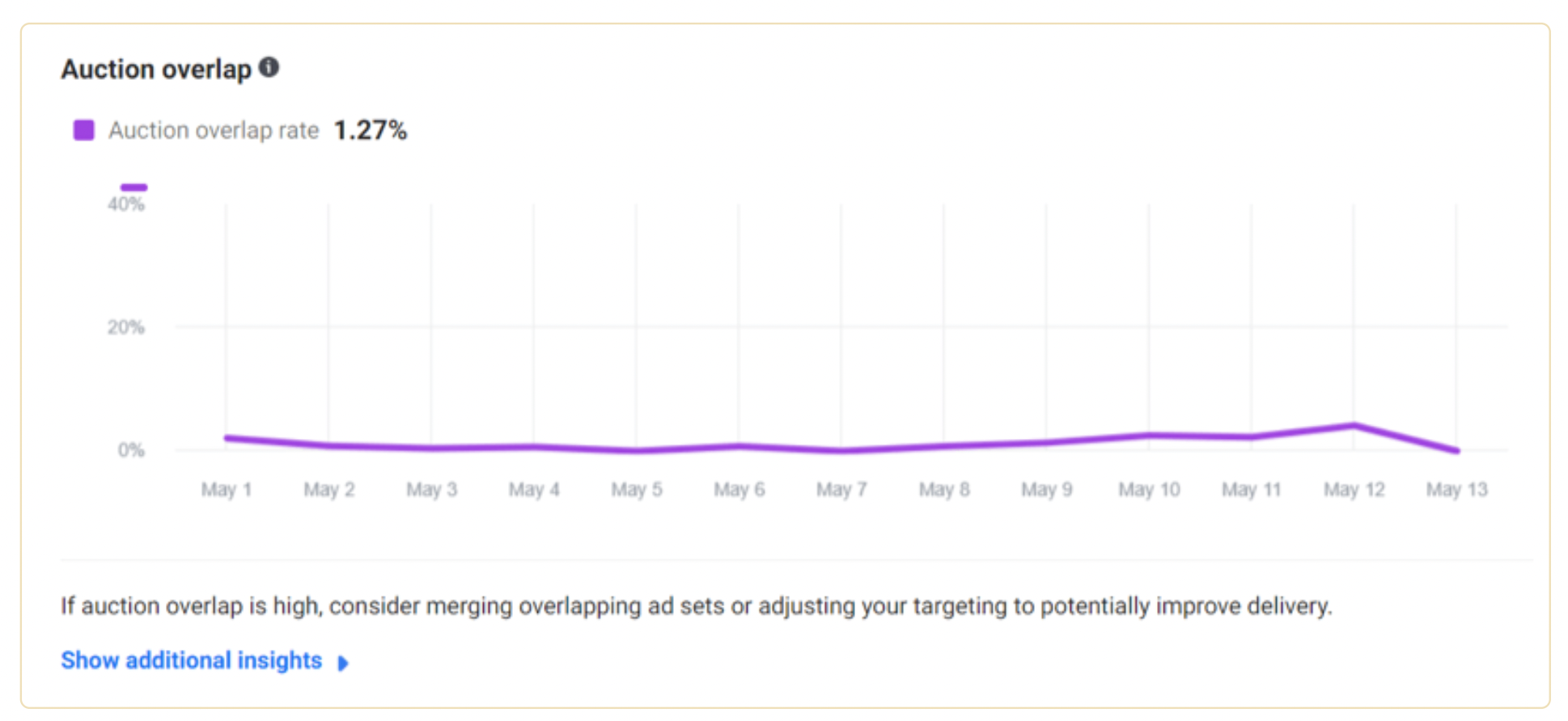 타겟이 중복되는 광고 세트를 만들면 페이지의 광고 여러 개가 동일한 경매에 입찰하게 될 수 있음. Meta에서는 이를 경매 중복 (Auction Overlap)이라 칭합니다. 페이지에서 두 개 이상의 광고 세트가 동일한 광고 경매에 입찰하는 경우 가장 가치가 높은 광고 세트가 경매에서 경쟁하도록 선택됩니다.
