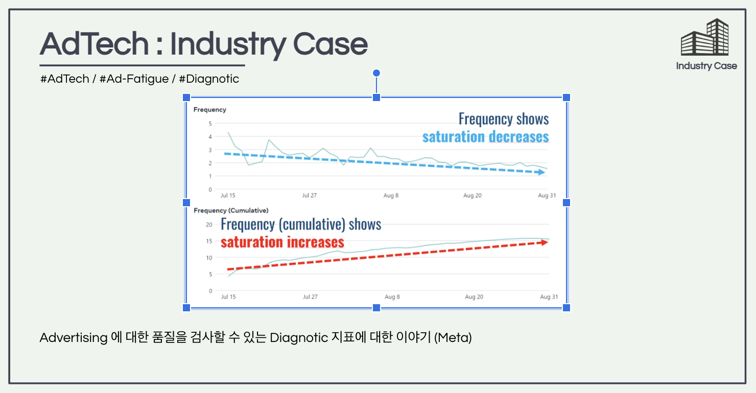 광고 피로(Ad-Fatigue)는 광고 빈도가 높아지면서 동일한 광고가 반복적으로 노출될 때 발생하는 현상 1,000회 노출당 비용(CPM)과 광고 지출 대비 수익률(ROAS) 같은 주요 지표에 부정적인 영향을 주며, 소비자가 같은 광고 를 계속 접할수록 성과가 점차 감소하는 특징을 보임.