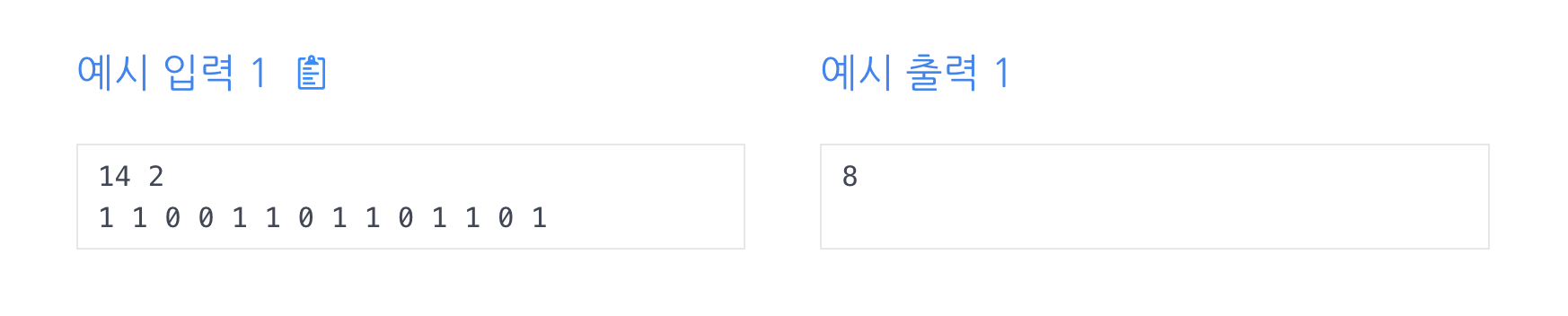 두 번째 줄에 N길이의 0과 1로 구성된 수열이 주어집니다.