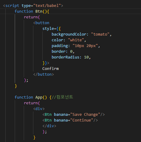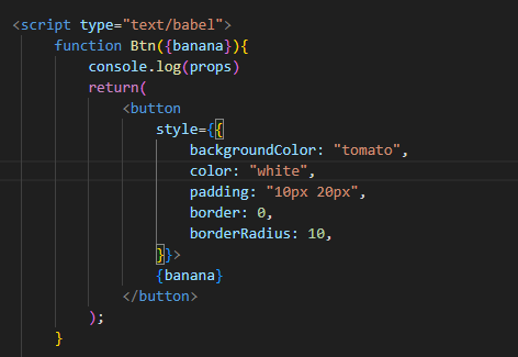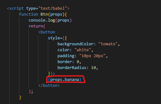 {props.banana}로 하면 btn에 지정해준 properties를 출력한다.