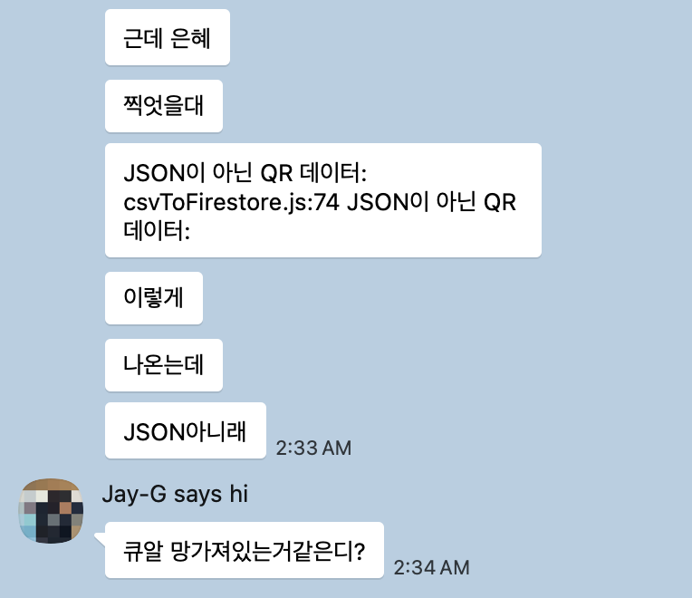 하지만, 기능상에는 문제가 없었지만 QR 내에 담긴 참가자 정보가 최신정보가 아니라는 이슈가 있어 아쉬움이 남았습니다.