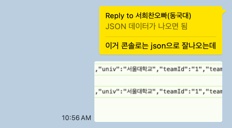 리더기는 QR안에 있는 데이터들을 읽어주고, 자체적으로 체크인이 되었는지를 확인할 수 있게 데이터를 관리할 수 있도록 했어요. 그래서 QR안에 참가자 이름, 학교, 팀 명, 그리고 팀 번호를 넣어서 보내기로 했습니다!