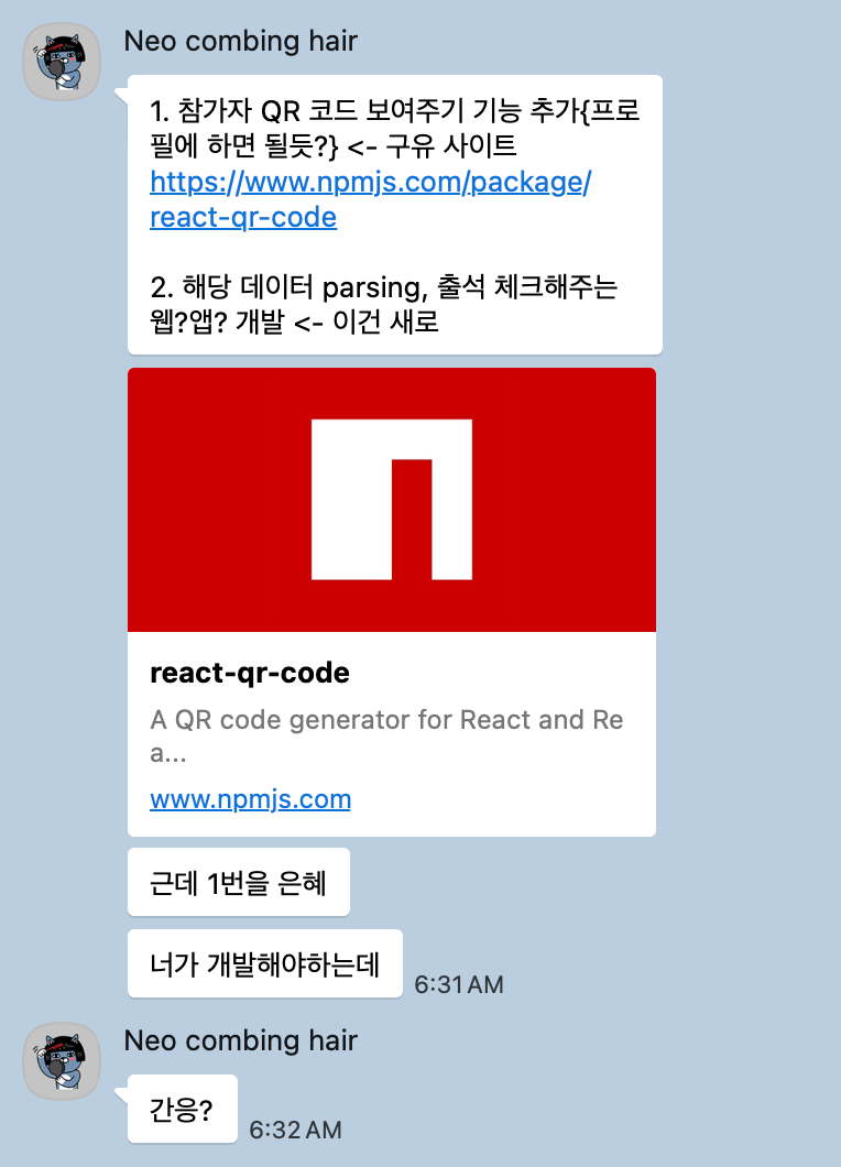 이번 포스팅에서는 참가자 출석 체크 시스템을 개발하던 중, react-qr-code 오픈소스에 첫 기여하게 된 과정을 공유해보려 합니다.