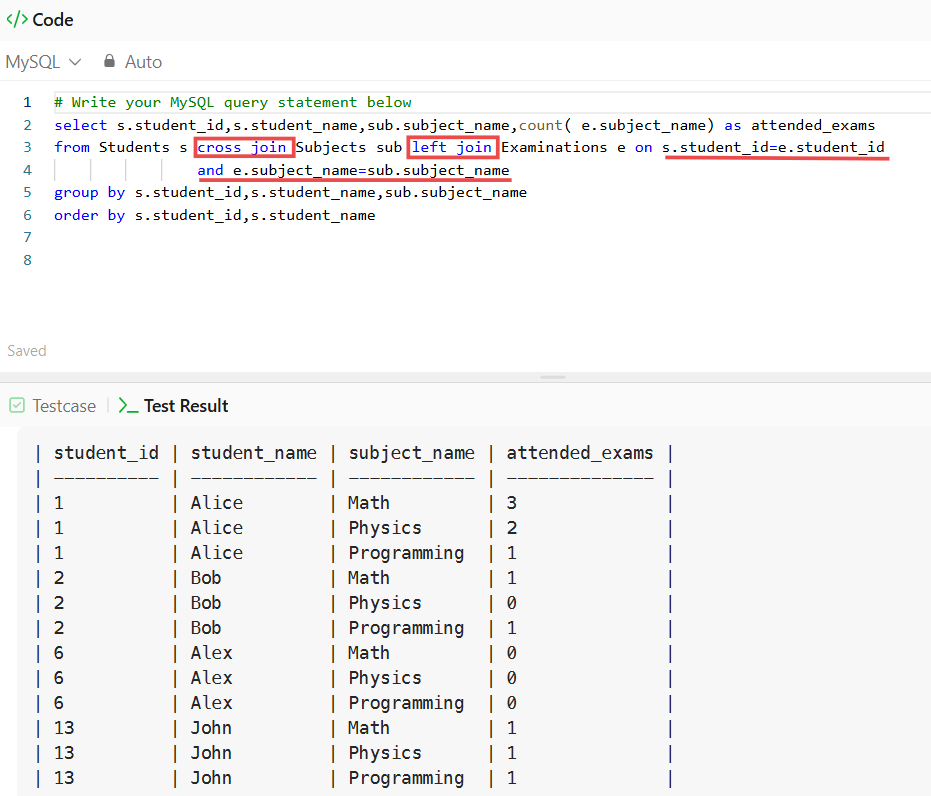✅ Cross Join Result