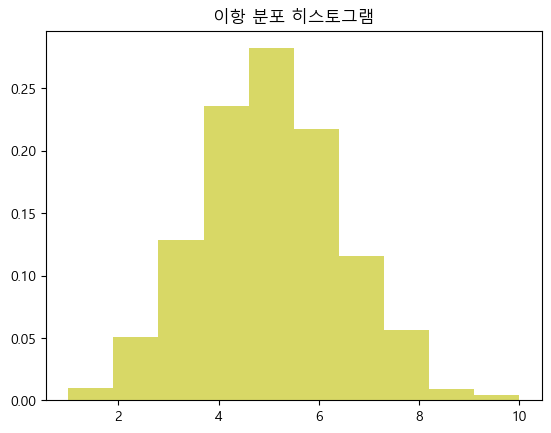 # 이항분포 생성 (예: 동전 던지기 10번 중 앞면이 나오는 횟수)