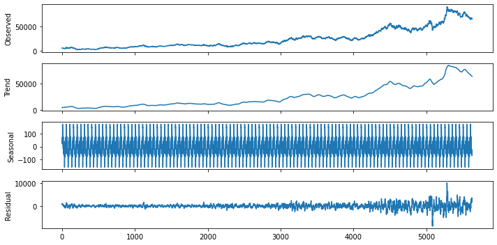 result = seasonal_decompose(df.Close, model='additive', two_sided=True,