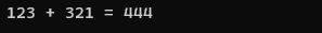 printf("123 + 321 = %d\n", atoi(str1)+atoi(str2));