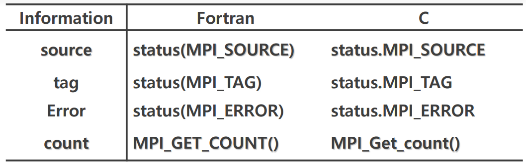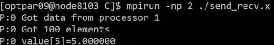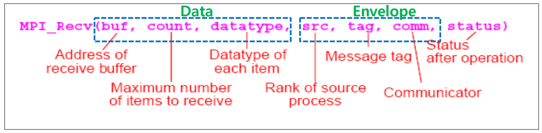 MPI_Recv(value, 200, MPI_FLOAT, 1, 55, MPI_COMM_WORLD, &status);