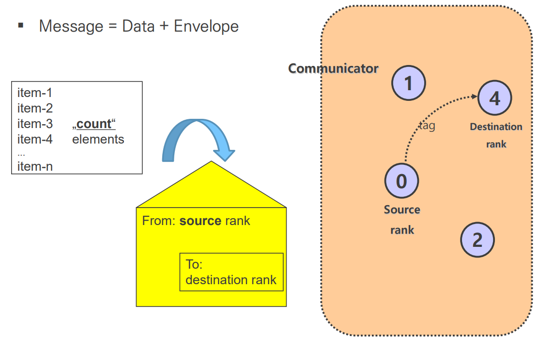 MPI_Send(data,100,MPI_FLOAT, 0, 55, MPI_COMM_WORLD)