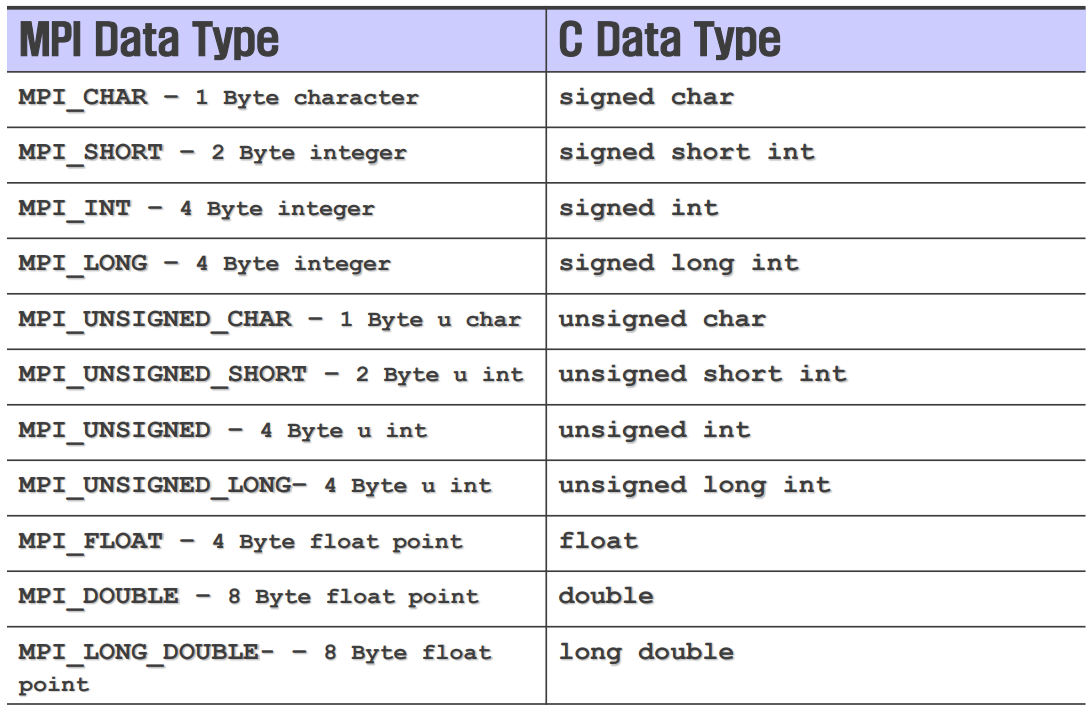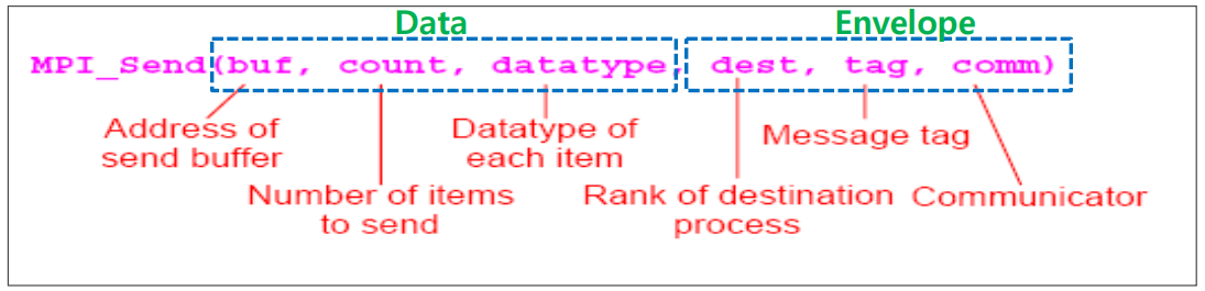 MPI_Send(data,100,MPI_FLOAT, 0, 55, MPI_COMM_WORLD);