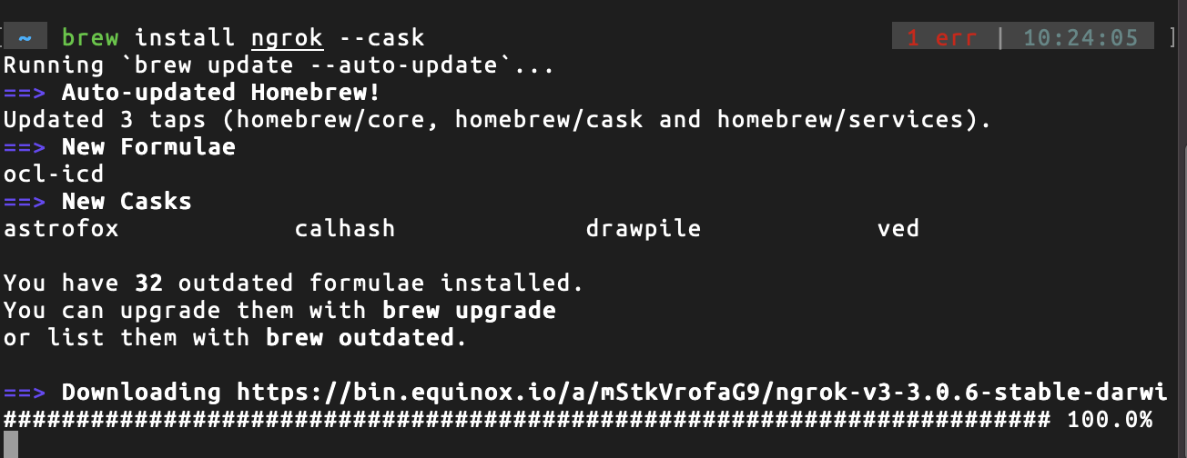 ngrok홈페이지에서 설치 패키지를 다운로드 받을 수 있고, 또는 brew(mac)를 이용하여 터미널에서 직접 설치할 수 있다.