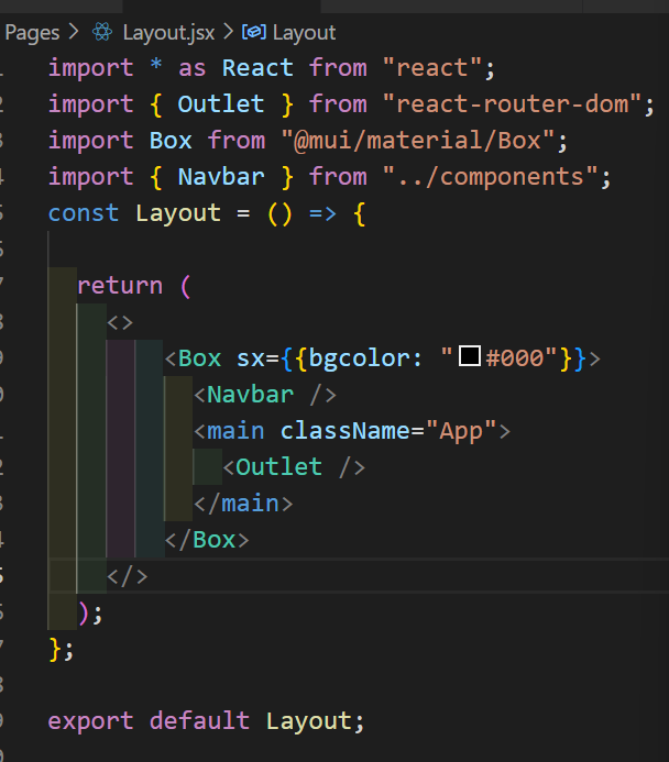 변화하는 페이지 요소들은 react-router-dom에서 지원하는 Outlet이라는 컴포넌트를 사용하여 전체적인 레이아웃을 보다 직관적으로 눈으로 볼 수 있다고 생각한다.