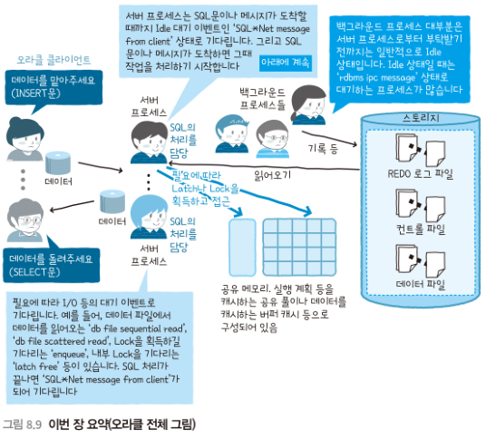 - 대기 이벤트(wait event): 기다리게 만든 작업