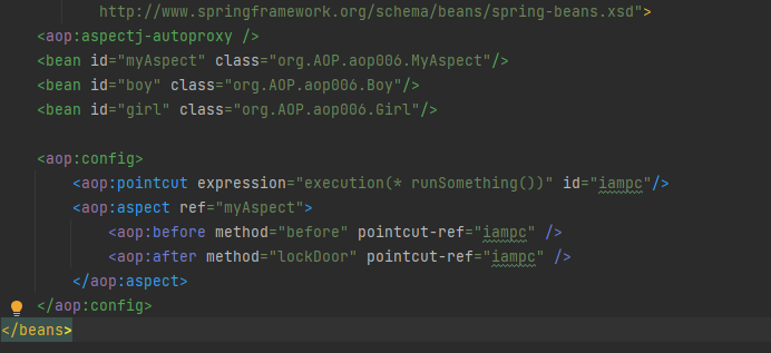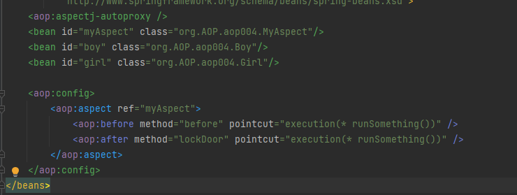 <bean id="myAspect" class="org.AOP.aop002.MyAspect"/>