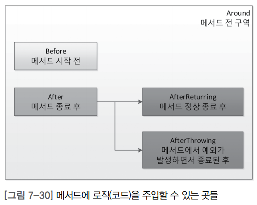 스프링 AOP -> 👉로직(code) 주입, 들어갈 위치는?