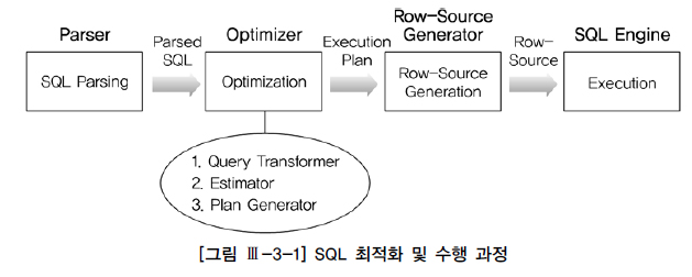 SQL을 가장 빠르고 효율적으로 수행할 최적(최저비용)의 처리 경로를 생성해주는 DBMS 내부의 핵심 엔진이다.
