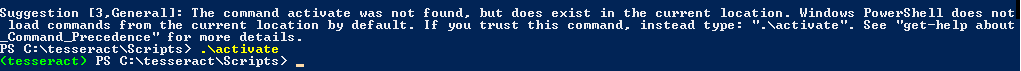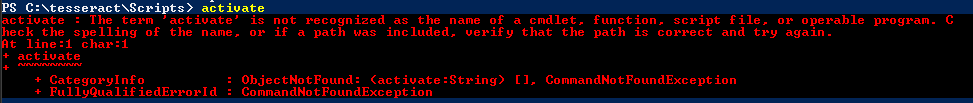 PS C:\tesseract\Scripts> activate를 하게 되면 오류가 발생한다.